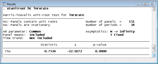 lnrxrate contains a unit root. Because we use the United States as