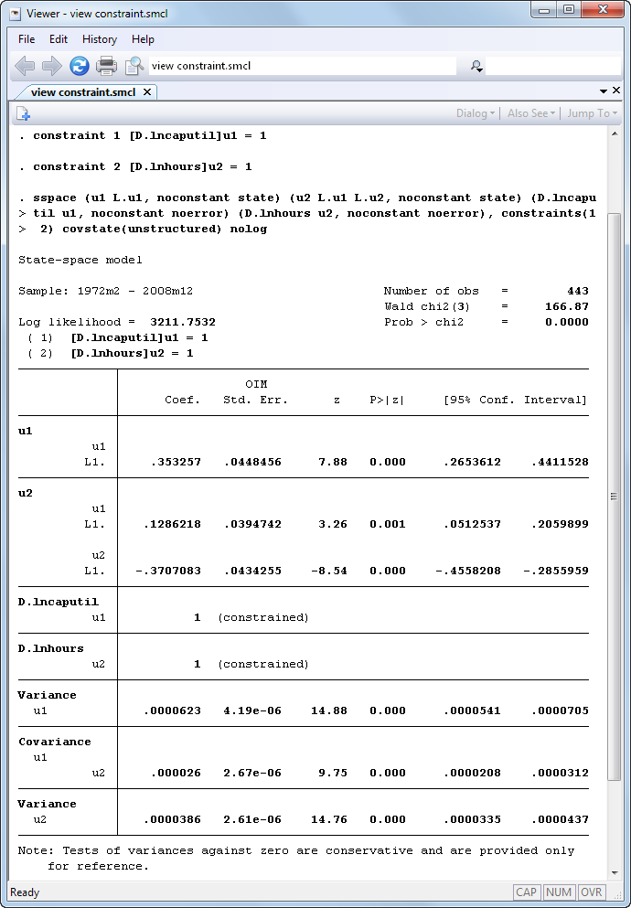 manufacturing sector of the U.S. economy, lncaputil, and on the log of