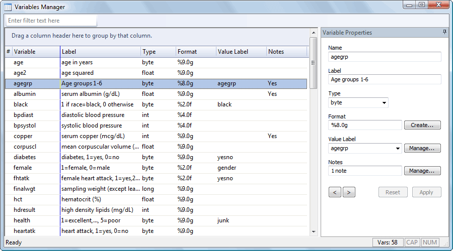 Stata’s Variables Manager makes organizing your dataset a snap.