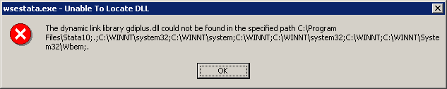Some users may encounter the pop-up below when launching Stata 10 on Windows 2000.