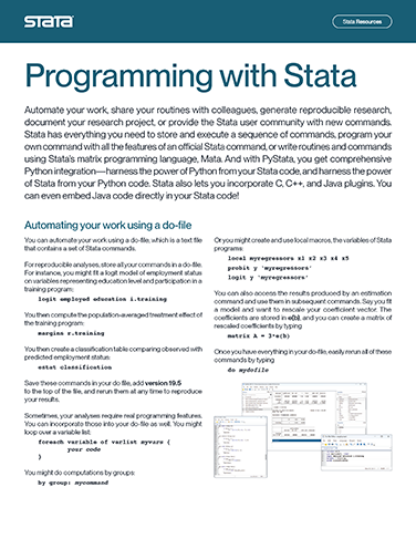 Easily downloadable product flyers and guides that highlight Stata's features and capabilities.