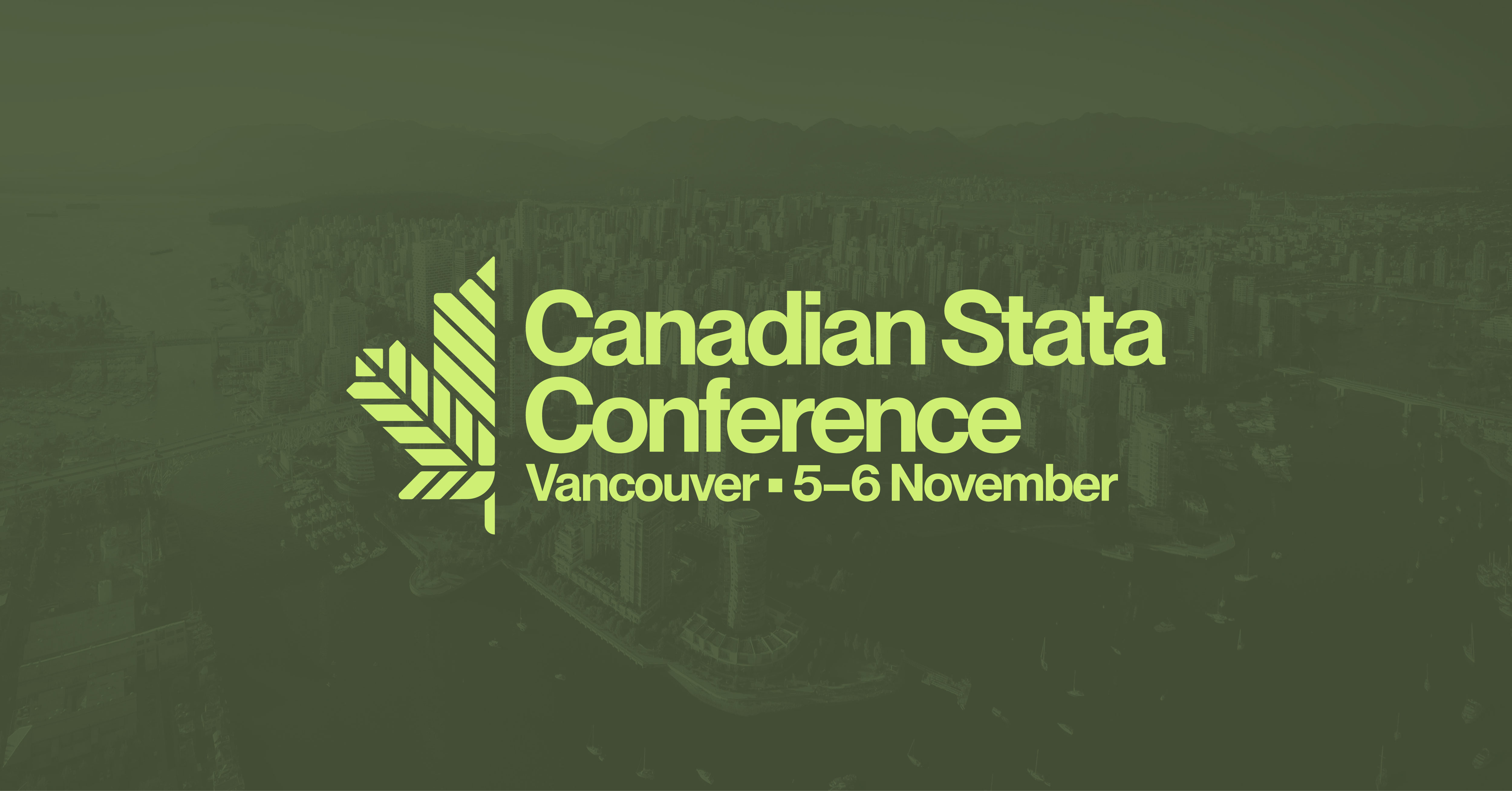 The 2026 Canadian Stata Conference will be held between 8:00 a.m. and 5:00 p.m. PST on Thursday, 5 November, and Friday, 6 November, at the University of British Columbia. Everyone is also invited to attend our preconference workshop on Thursday and our annual users' dinner on Friday night. Accomodations at UBC can be booked directly. More details will be available soon. See below to sign up for alerts.