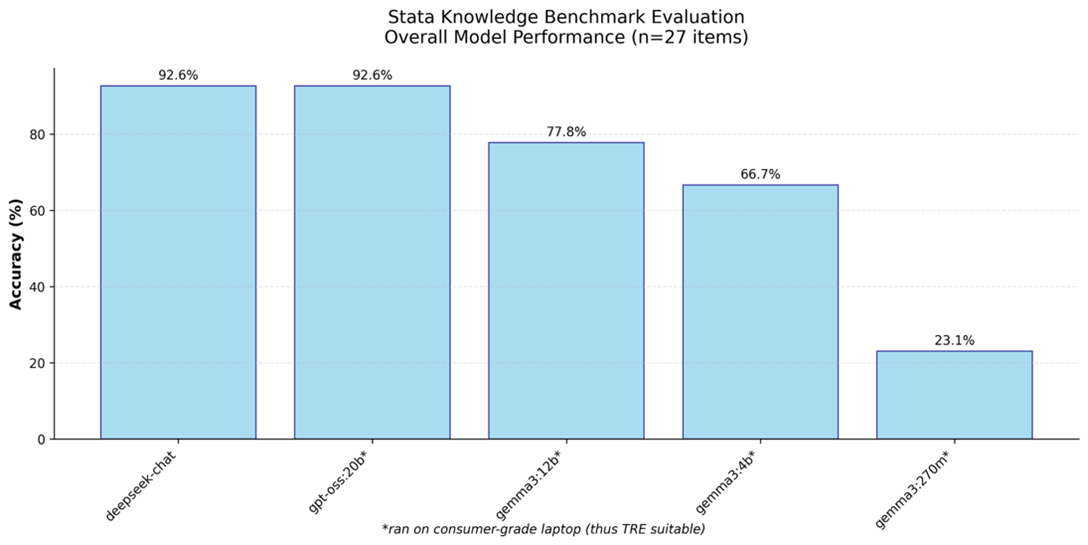 Let’s begin with what’s already out there. Benchmarks test LLMs on Stata tasks to see which provides the most accurate Stata code responses.