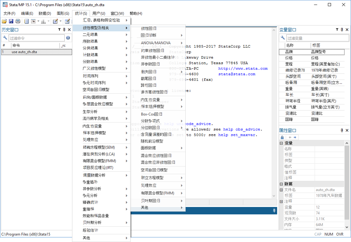 All of Stata's interface—all menus and all dialogs—is now available in Chinese.