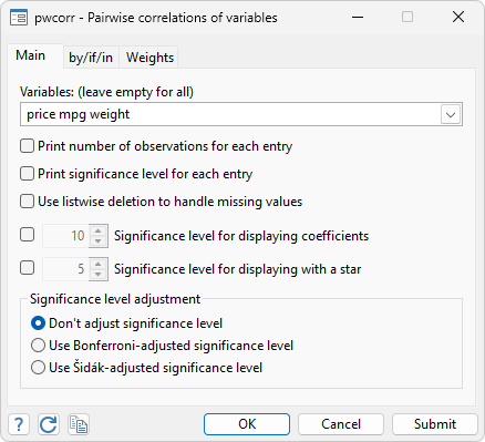 To learn more, see [R] correlate →