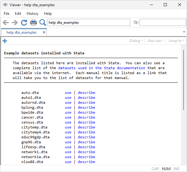 To learn more, see [U] 1.2.2 Example datasets →