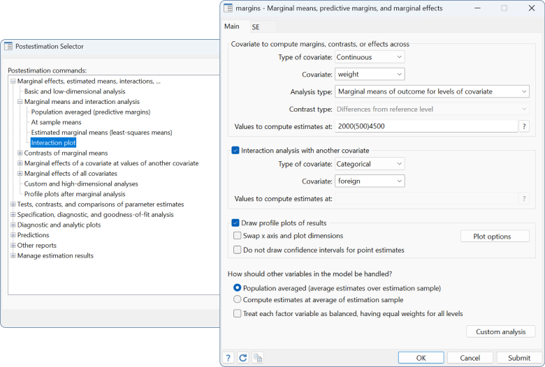 Interpret and visualize model results by using marginal means.