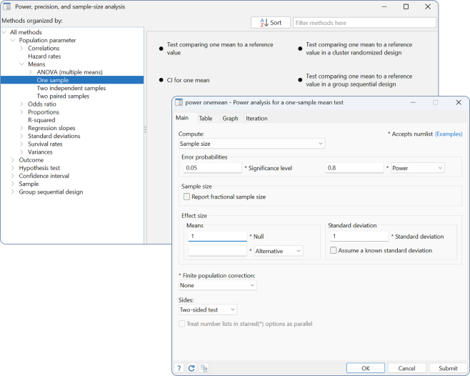 To learn more, see [PSS] power onemean →