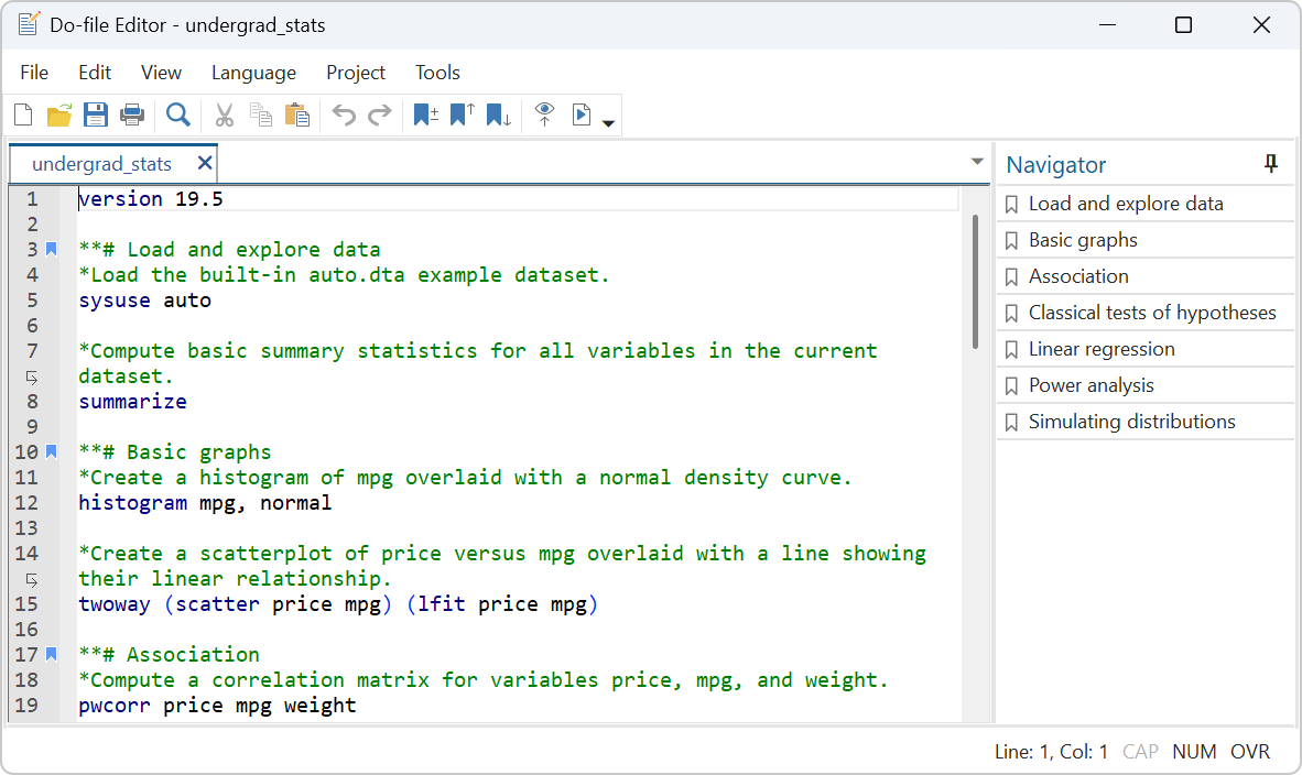 Stata’s integrated version control ensures that the commands you teach today will produce the same results in the future. Simply include a version statement—like version 19.5—at the beginning of your script or program.