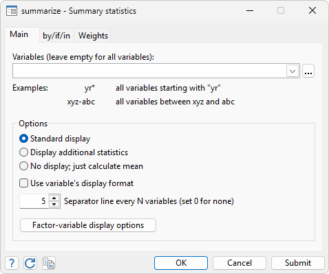 To learn more, see [R] summarize →