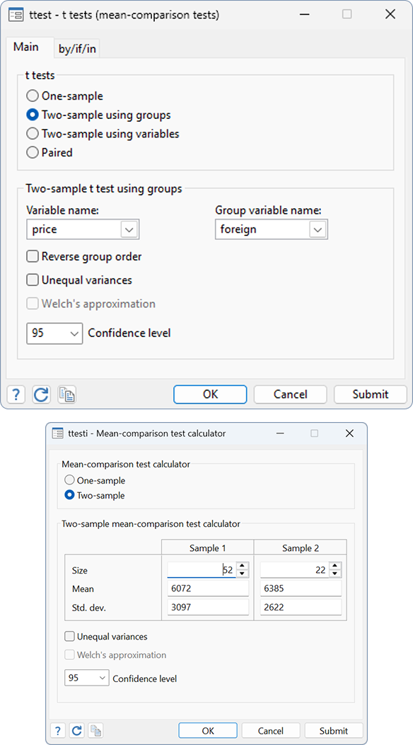 To learn more, see [R] ttest and [U] 19 Immediate commands →