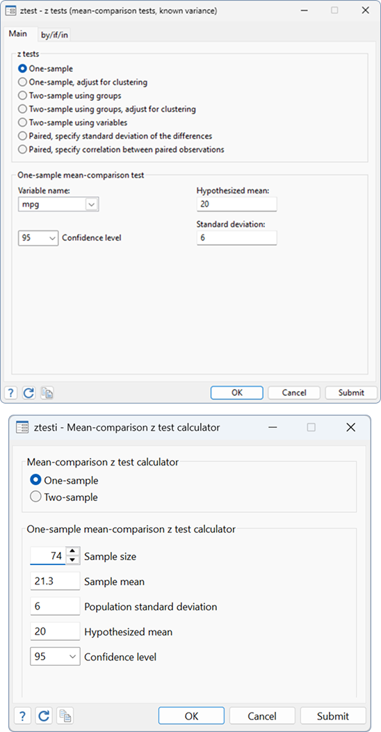 To learn more, see [R] ztest and [U] 19 Immediate commands →